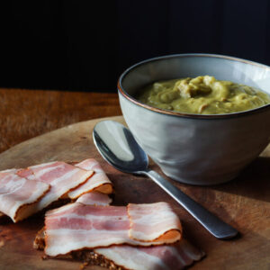 Erwtensoep met roggebrood en katenspek